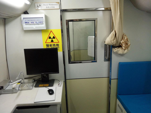 DR體檢車設(shè)備的布局防護(hù)查看周圍的劑量當(dāng)量率水平。車廂設(shè)備房固定屏蔽,四周的防御性不能低于1毫米的鉛當(dāng)量。檢查時(shí)候車廂機(jī)房的頂部底部需要防護(hù)避免輻射散射。
