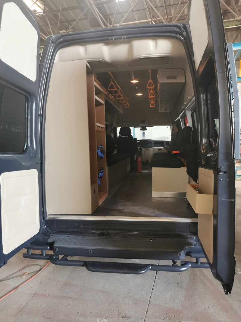 軍警車適用于特警、武警用于執(zhí)勤,追逃,反恐處理突然事件,也可以應(yīng)用于警戒等需求,集成性安全性舒適性一體的新型警用車輛。車身采用國際流行的楔形裝甲車的外型設(shè)計。軍警車外型威猛剛勁。車身采用進(jìn)口防彈材料制作并采用跳彈結(jié)構(gòu),防彈設(shè)計。軍警車座椅及內(nèi)飾材料采用真皮軟包;軍警車加裝空調(diào)、暖風(fēng)、換氣扇等,保證車內(nèi)環(huán)境的舒適性,射擊孔,炮塔等配置豐富,滿足各種處突需求。