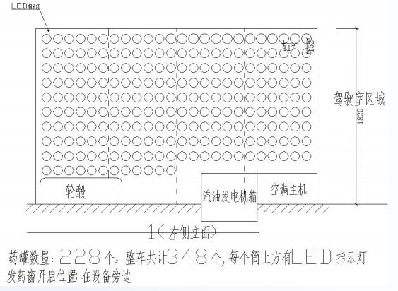 藥瓶柜采用車內(nèi)一體式設(shè)計(jì),開模定制按藥瓶φ91mm設(shè)計(jì),藥瓶放入藥瓶桶后露出底部平面30mm(便于取放)。每個(gè)藥瓶桶有LED指示燈,采用燈帶的安裝方式。藥瓶桶的左右中心距離117mm,上下中心距離152mm,車內(nèi)共配有348個(gè)藥品桶。