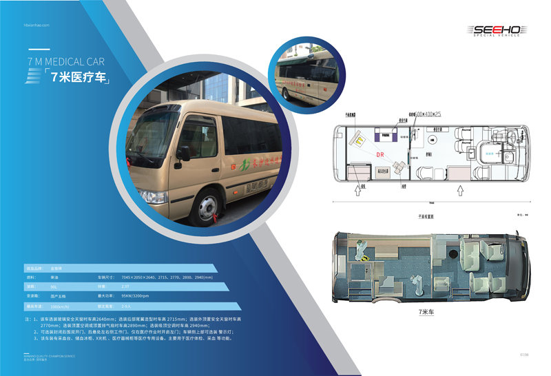 顯浩專用車生產(chǎn)的體檢車均選用一線品牌車(宇通、金龍、金旅)實(shí)用、先進(jìn)、布局合理、操作方便、駕乘舒適。 體檢車長有6米、7米、8.2米、9米、10.5米、11米、12米可選。